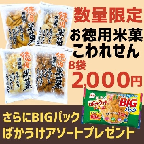 **こわれせんべい8袋セット(税込2,000円)**をご予約いただいた方に、
