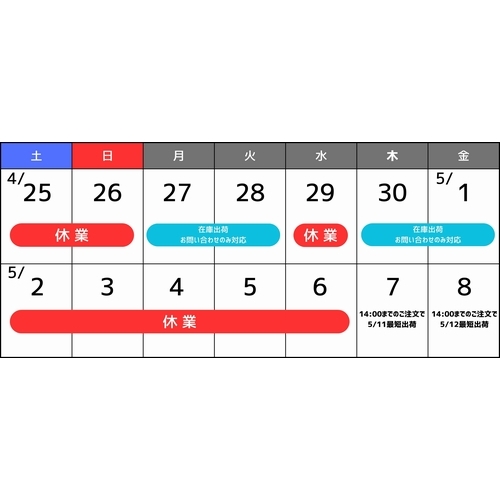 ゴールデンウィーク期間中の営業・発送についてご案内いたします。